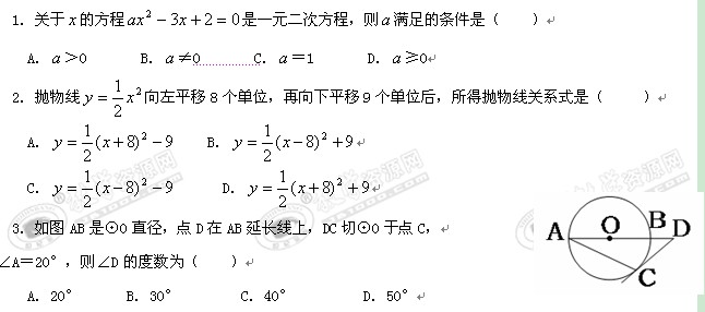 江苏省东海县平明中学11-12学年九年级上学期第二次月考试卷(数学)缺答案
