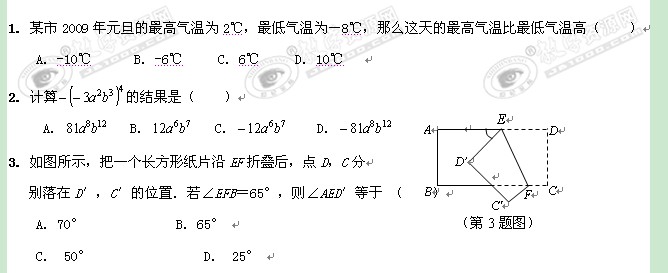 福建省龙海市第二中学2017届九年级上学期期中考试试题