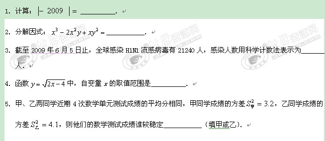 福建省龙海市第二中学2017届九年级上学期期中考试试题