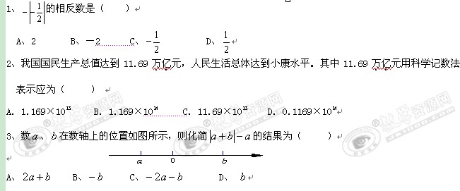 安龙县戈塘中学11-12学年七年级上学期第三次月考试卷(数学)缺答案