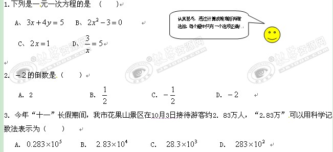 江苏省灌南县港镇、五队、田楼、三中四校11-12学年七年级上学期第二次阶段测试题(数学)