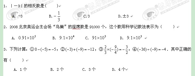 江苏省宜兴外国语学校11-12学年七年级上学期第二次诊断性练习试题(数学)缺答案