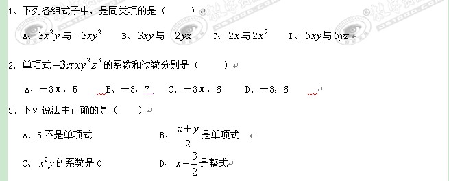 数学:2011年期末复习第二章《整数的加减》单元测试(人教版七年级上)