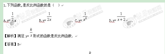 数学:《反比例函数》单元评价检测(人教版八年级下)