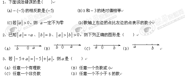 数学:第二章《有理数》单元测试2(苏科版七年级上)
