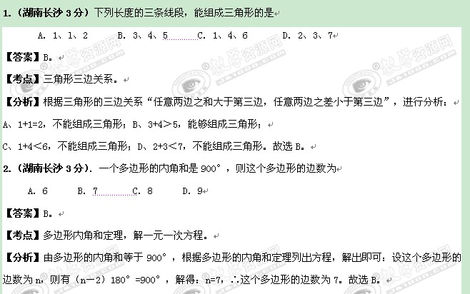 湖南省14市州2011年中考数学专题8:平面几何基础