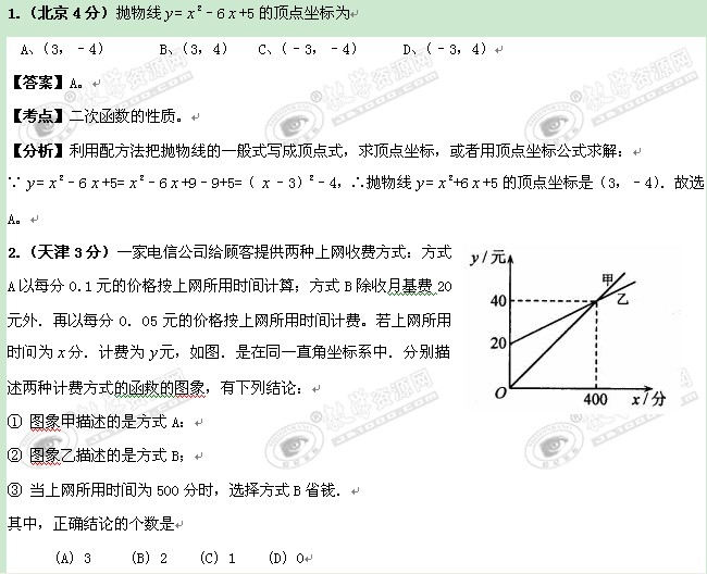 华北5省市自治区2011年中考数学专题6:函数的图像与性质