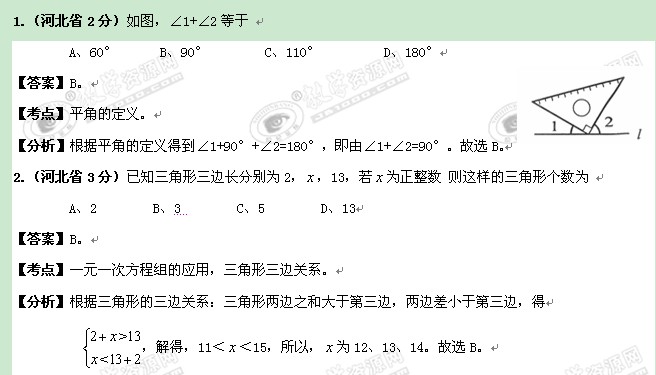 华北5省市自治区2011年中考数学专题8:平面几何基础