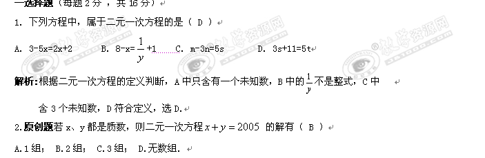 数学:第十章《二元一次方程组》单元测试(苏科版七年级下)