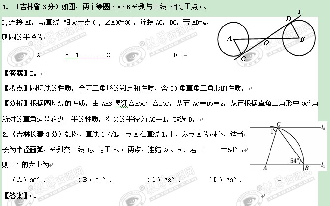 辽宁吉林黑龙江3省2011年中考数学专题11:圆