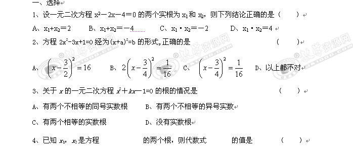 数学:第二章《一元二次方程》同步测试(苏科版九年级上)