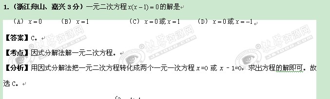 浙江省2011年中考数学专题3:方程(组)和不等式(组)