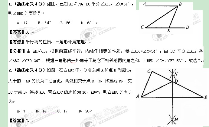 浙江省2011年中考数学专题8:平面几何基础