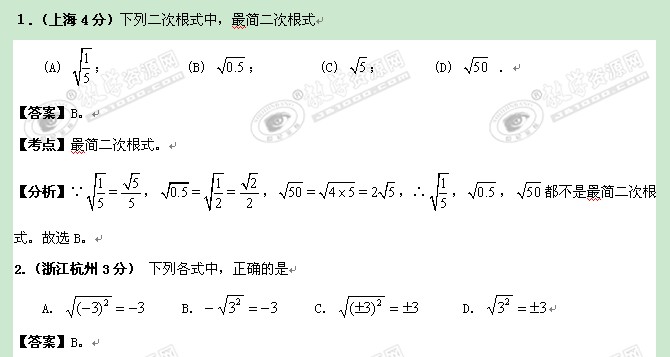 全国2011年中考数学专题6:二次根式