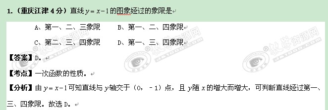 全国2011年中考数学专题15:一次函数(正比例函数)的图像、性质