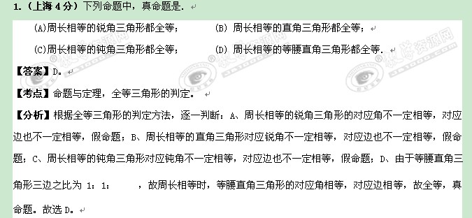 全国2011年中考数学专题26:命题与证明