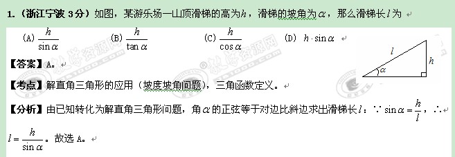 全国2011年中考数学专题34:解直角三角形和应用