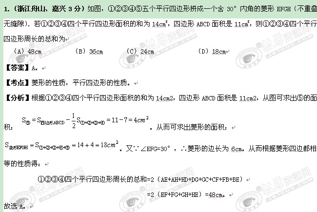 全国2011年中考数学专题35:矩形、菱形、正方形