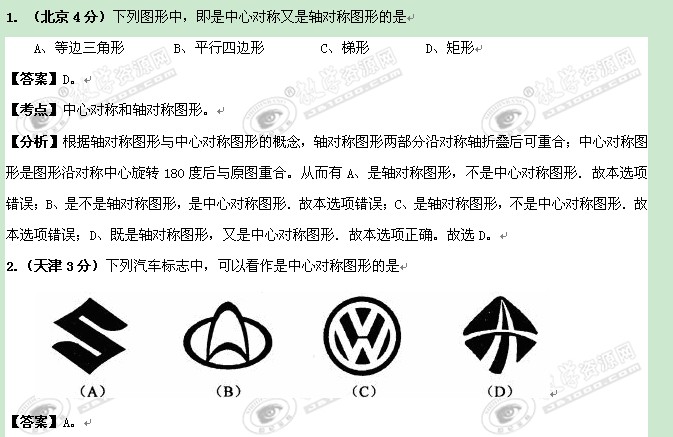 全国2011年中考数学专题41:轴对称和中心对称