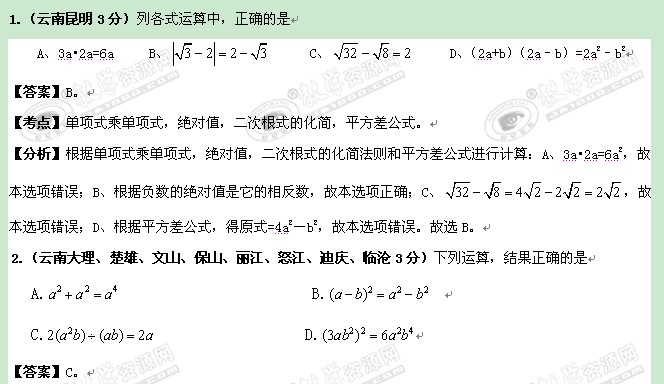 云南省贵州省2011年中考数学专题2:代数式和因式分解