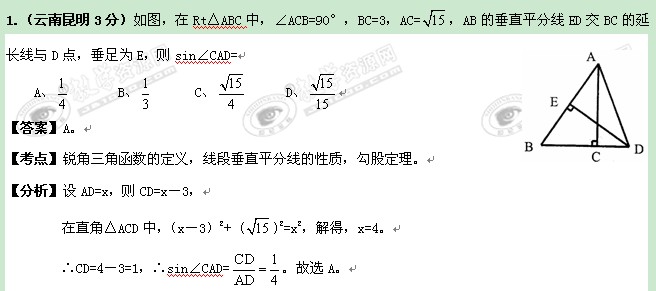 云南省贵州省2011年中考数学专题9:三角形