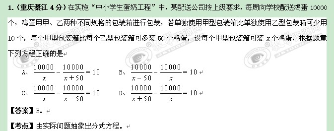 重庆四川2011年中考数学专题3:方程(组)和不等式(组)