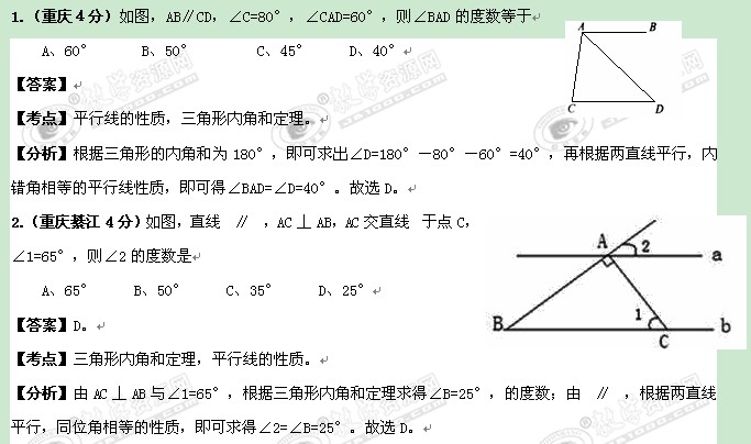 重庆四川2011年中考数学专题8:平面几何基础