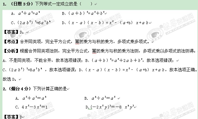 山东省17市2011年中考数学专题2:代数式和因式分解